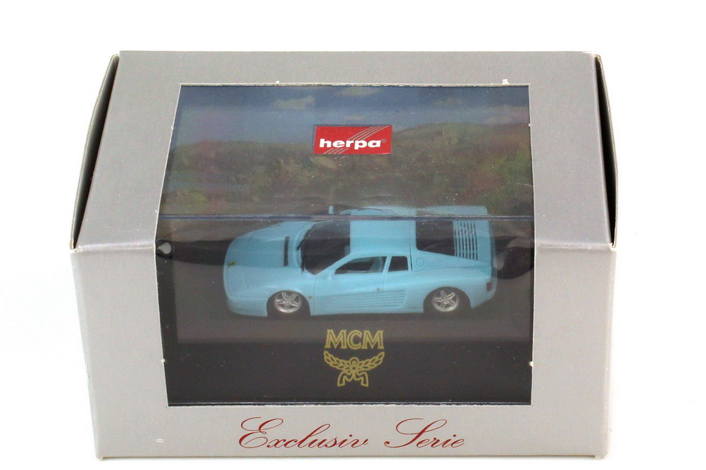 herpa-Modellauto in Minivitrine, M 1:87, Ferrari 512 TR hellblau "MCM"