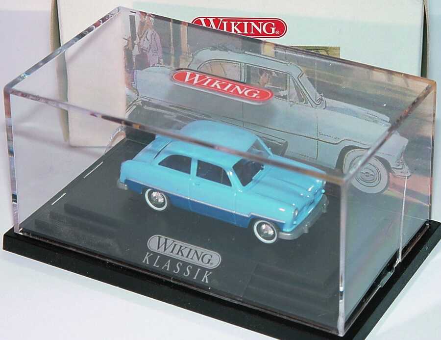 Wiking-Modellauto in Minivitrine, M 1:87, Ford Taunus 12M hellblau/dunkelblau