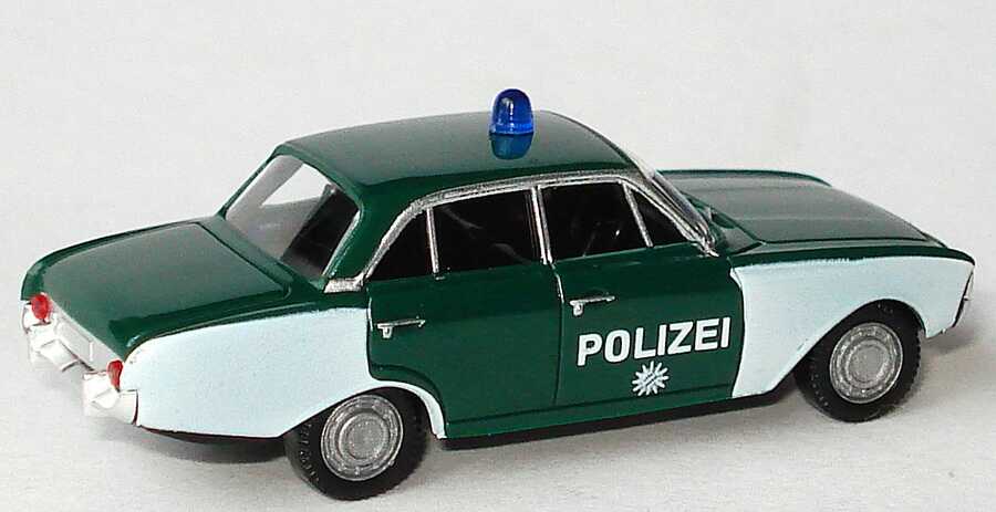 Wiking-Modellauto, M 1:87, Ford Taunus 17M Polizei dunkelgrün/weiß