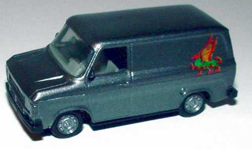 herpa-Modellauto, M 1:87, Ford Transit MK2 Kasten graumet. (mit Drachen-Decal)