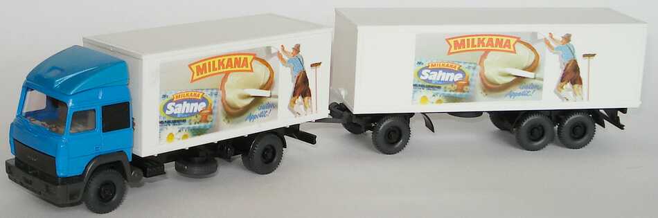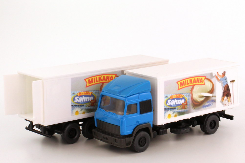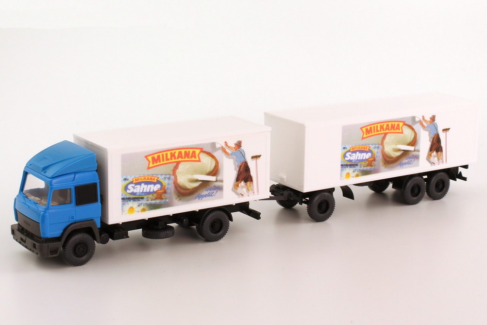 Wiking-Modellauto, M 1:87, Iveco TurboStar 190.36 Fv Koffer-Hängerzug 2/3 "Milkana"