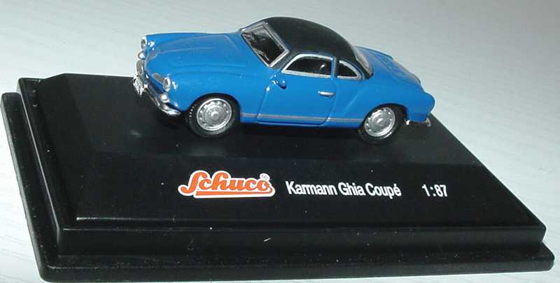 Schuco-Modellauto, M 1:87, Karmann Ghia Coupé blau, Dach schwarz (Volkswagen-Werbemodell)