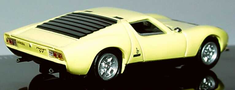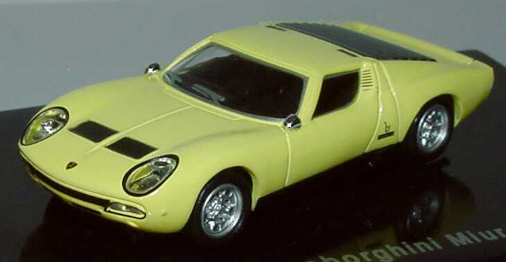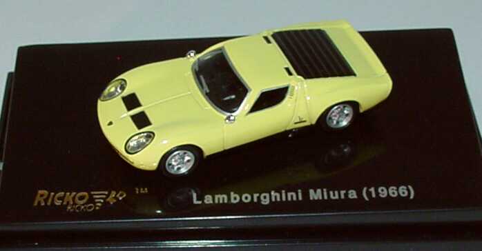Ricko-Modellauto in Minivitrine, M 1:87, Lamborghini Miura hellgelb