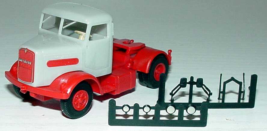 herpa-Modellauto, M 1:87, MAN 750 2achsige Sattelzugmaschine grau/rot