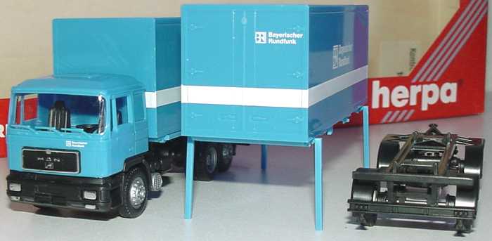 Herpa Modellauto, M 1:87, MAN F90 Wechselkofferhängerzug 3/2 "Bayerischer Rundfunk"