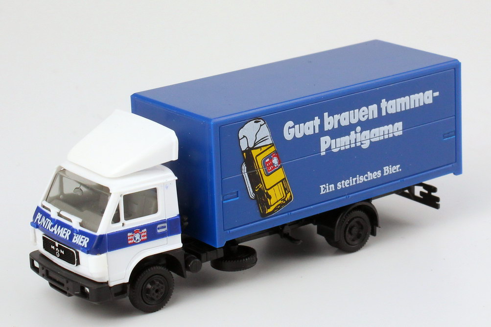 herpa-Modellauto, M 1:87, MAN G90 Getränke-Ko Lkw "Puntigamer Bier - Guat brauen tamma . Puntigama"
