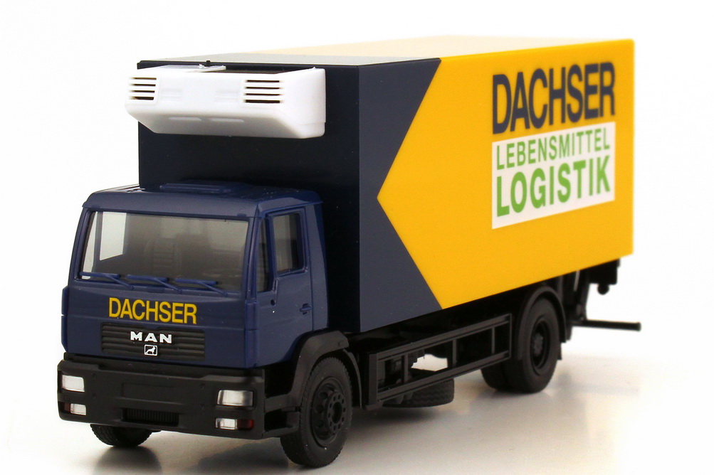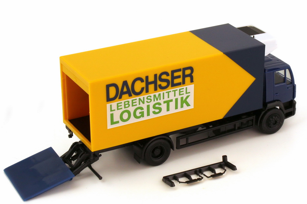 Foto 1:87 MAN M2000 L Evo Küko-Lkw 2a mit Ladebordwand Dachser Lebensmittel Logistik herpa 150088
