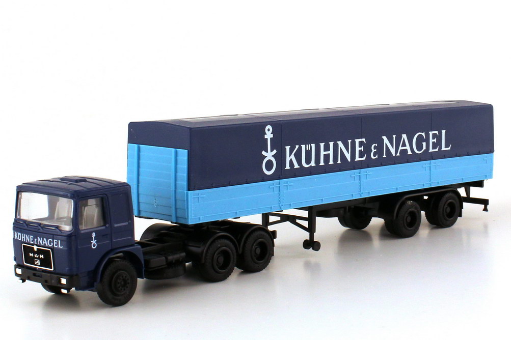 herpa-Modellauto, M 1:87, MAN F8 Pritsche/Plane-Sattelzug 3/2 "Kühne & Nagel"