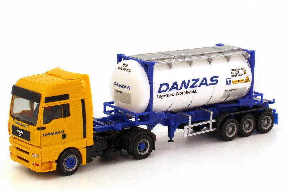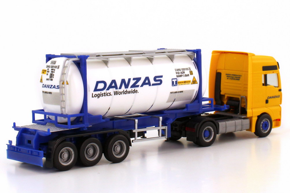 1:87 MAN TG-A XXL Fv 20ft. Swap-Tankcontainer-Szg 2/3 "Danzas" herpa 148276