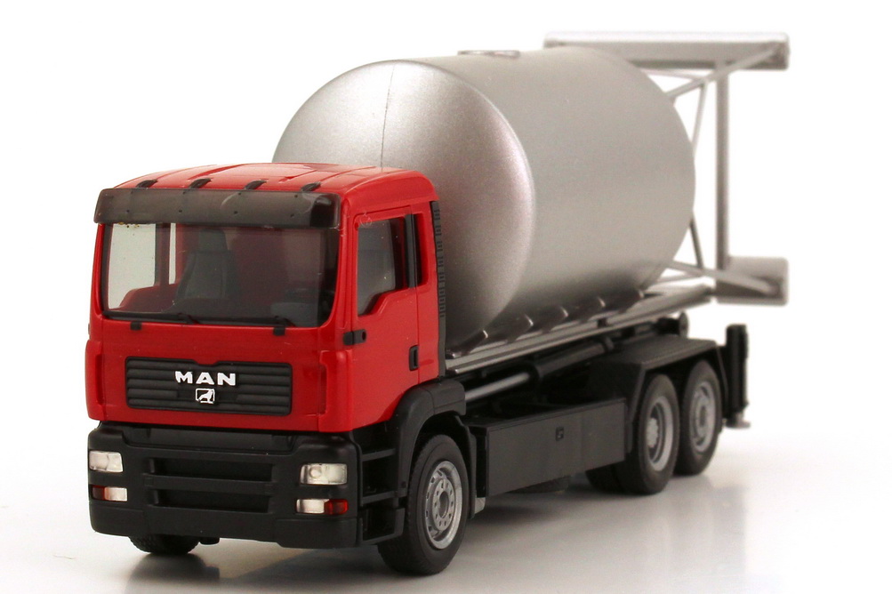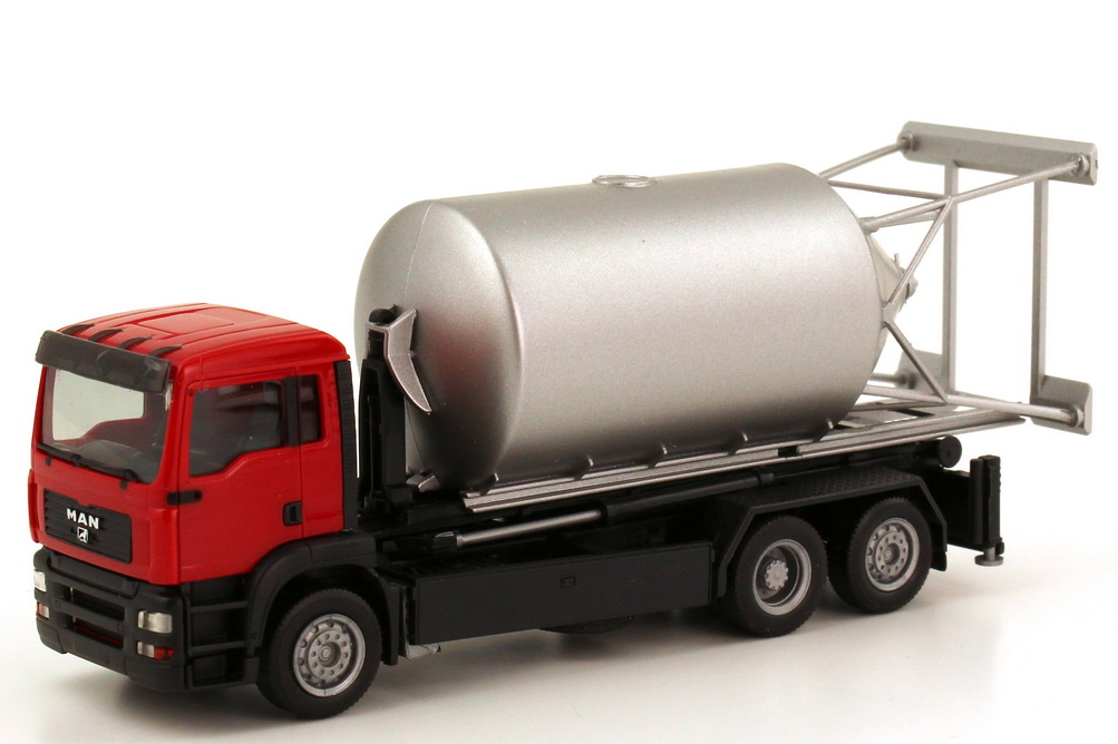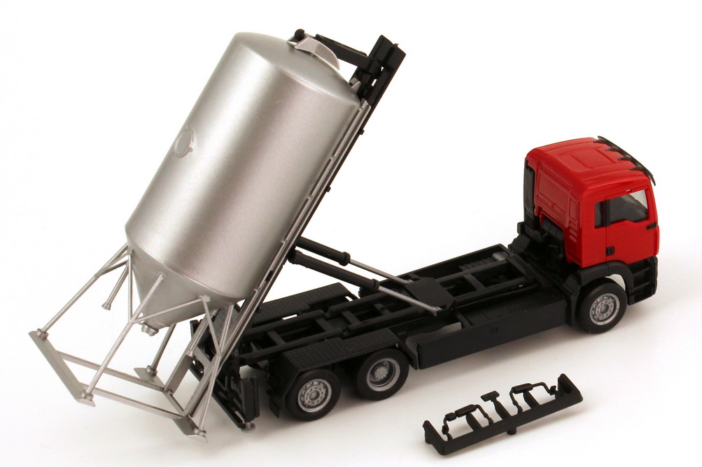 herpa-Modellauto, M 1:87, MAN TGA M 3achs Silosteller-Lkw mit 22,5 m³ Silo rot/silber