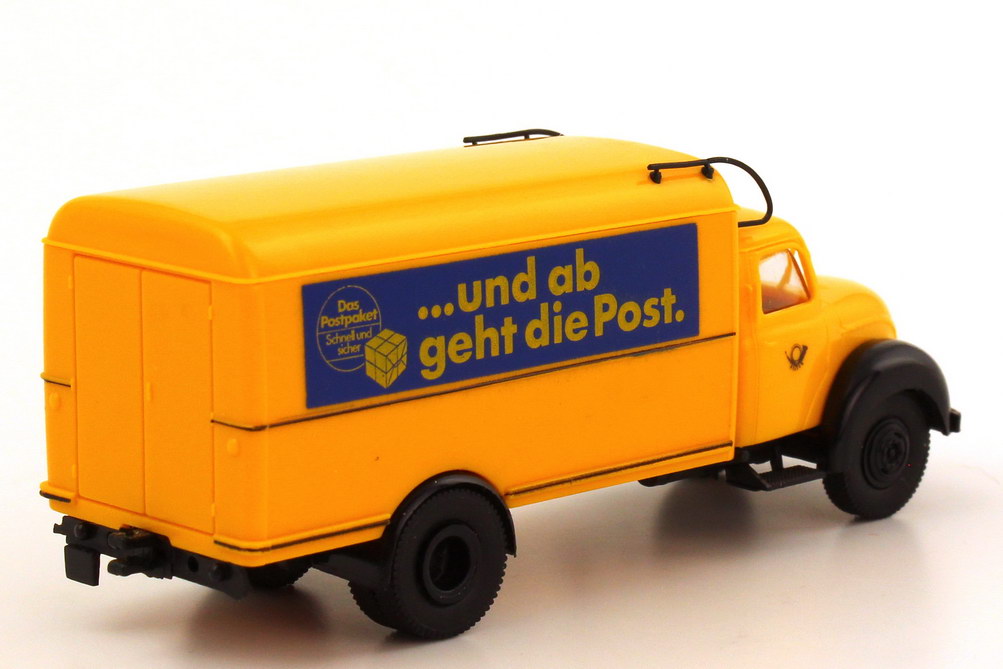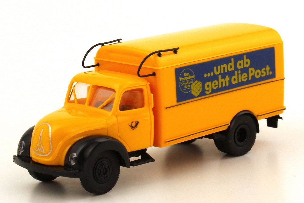 1:87 Magirus Sirius Koffer-Lkw Post - Das Postpaket. …und ab geht die Post. - Brekina 4217