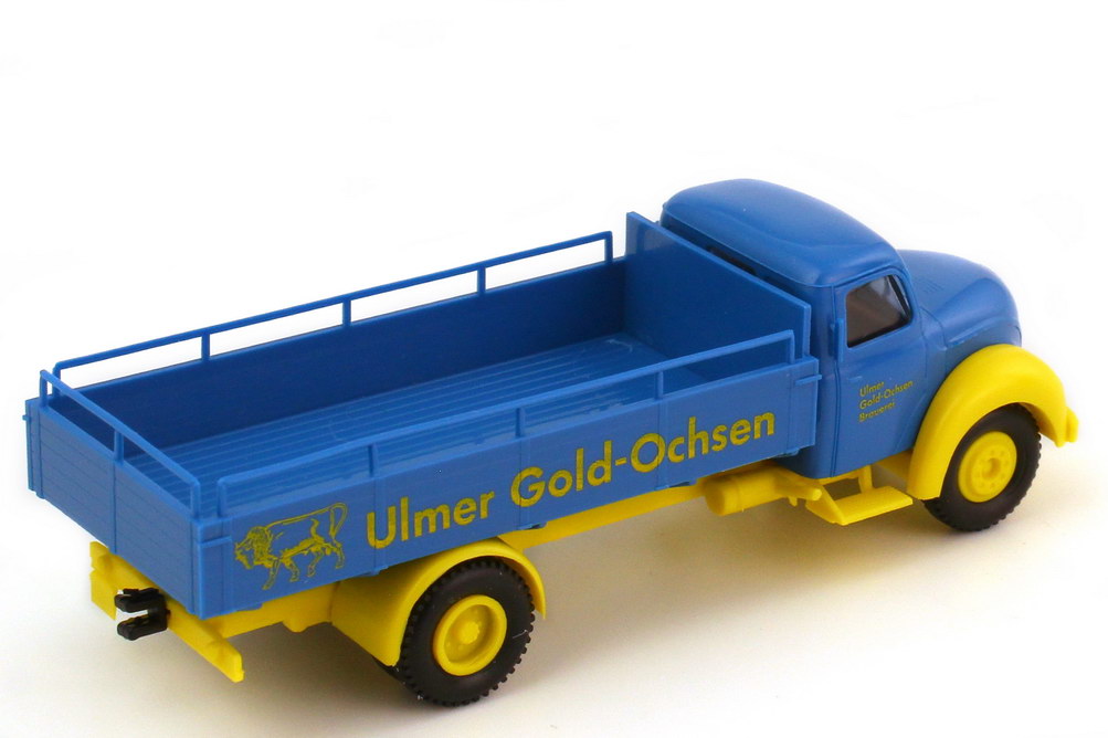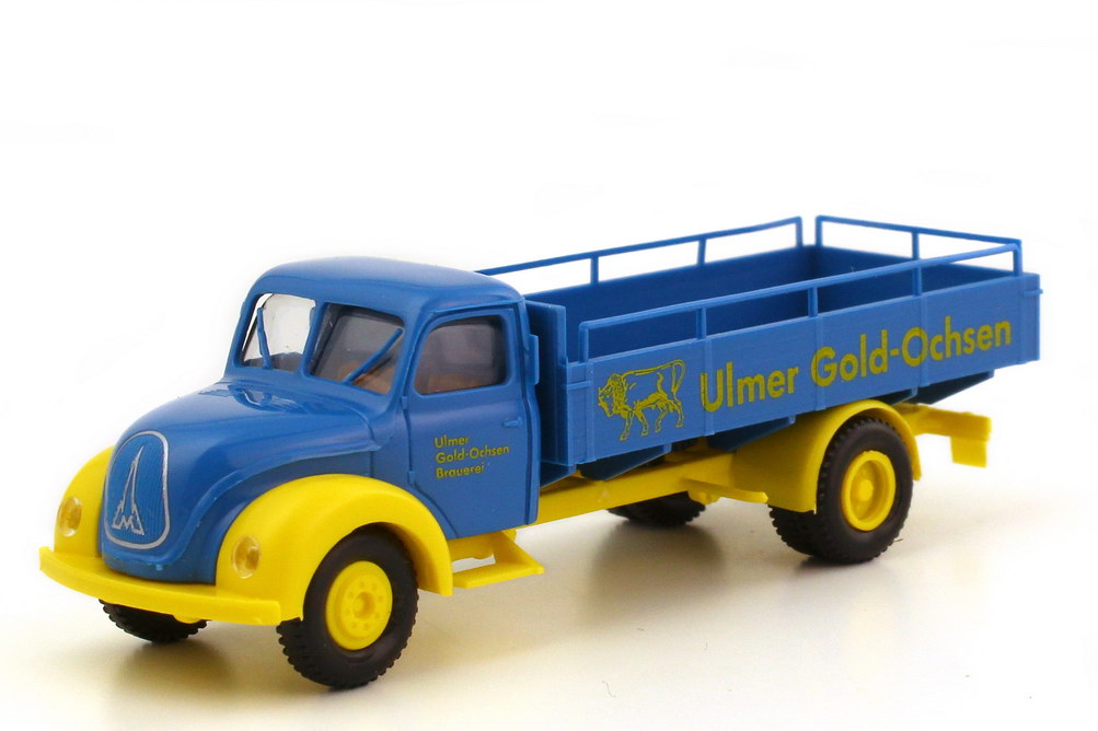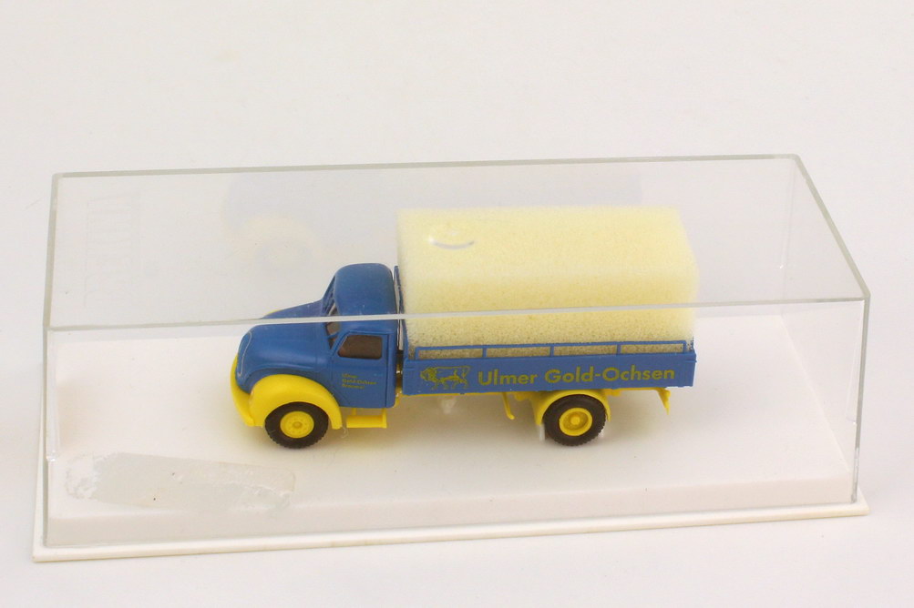 Brekina-Modellauto, M 1:87, Magirus Rundhauber S4500 Mercur 2achs Getränkepritsche "Ulmer Gold-Ochsen"