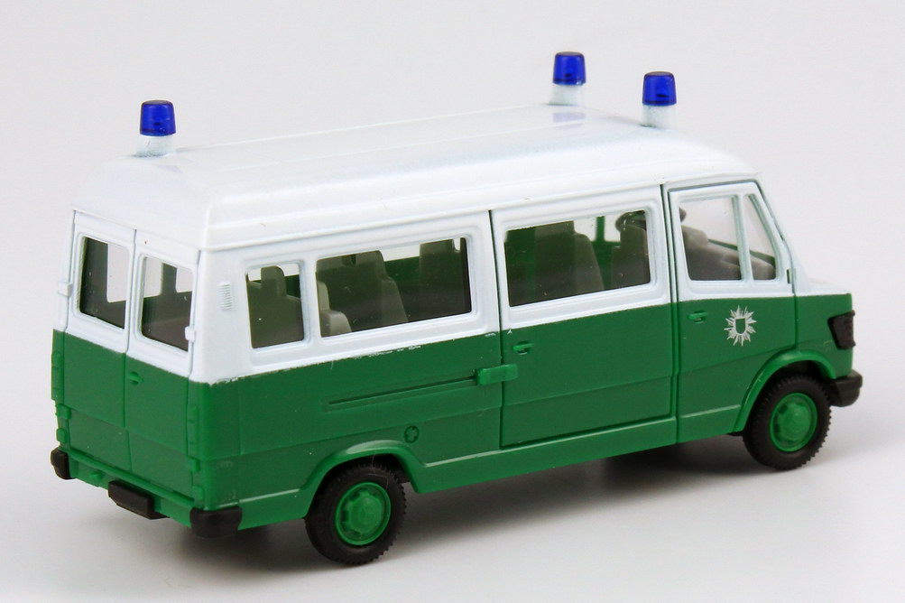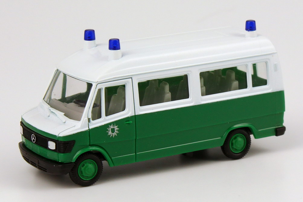 herpa-Modellauto, M 1:87, Mercedes-Benz 207D Bus Hochdach Polizei grün/weiß