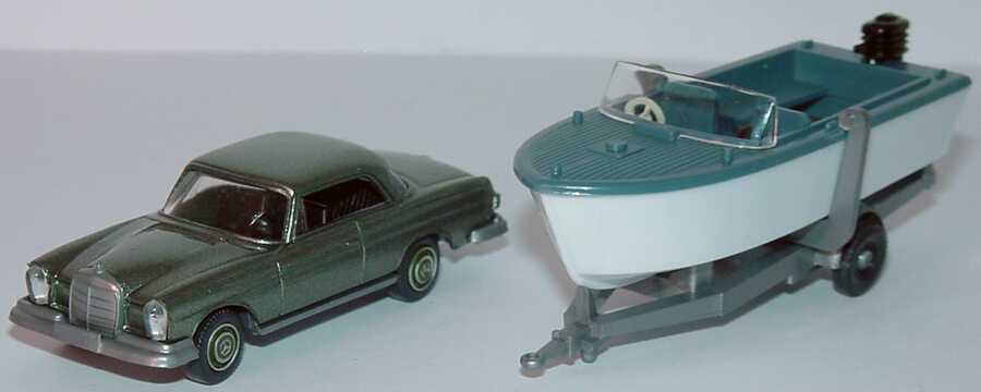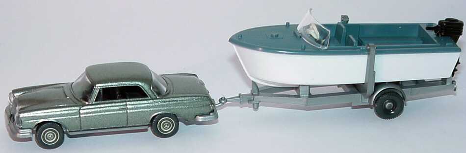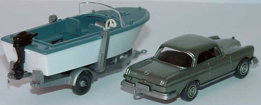 Wiking-Modellauto, M 1:87, Mercedes-Benz 250SE Coupé frescogrünmet. Mit Motorbootanhänger