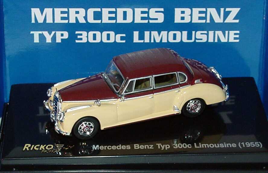 Ricko-Modellauto in Minivitrine, M 1:87, Mercedes-Benz 300c Limousine beige/weinrot