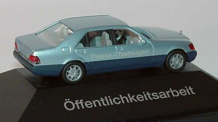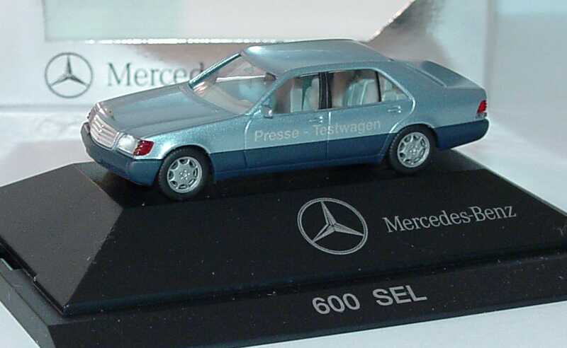 1:87 Mercedes-Benz 600SEL (W140) blausilber-met. "Presse-Testwagen, Öffentlichkeitsarbeit" Werbemodell herpa