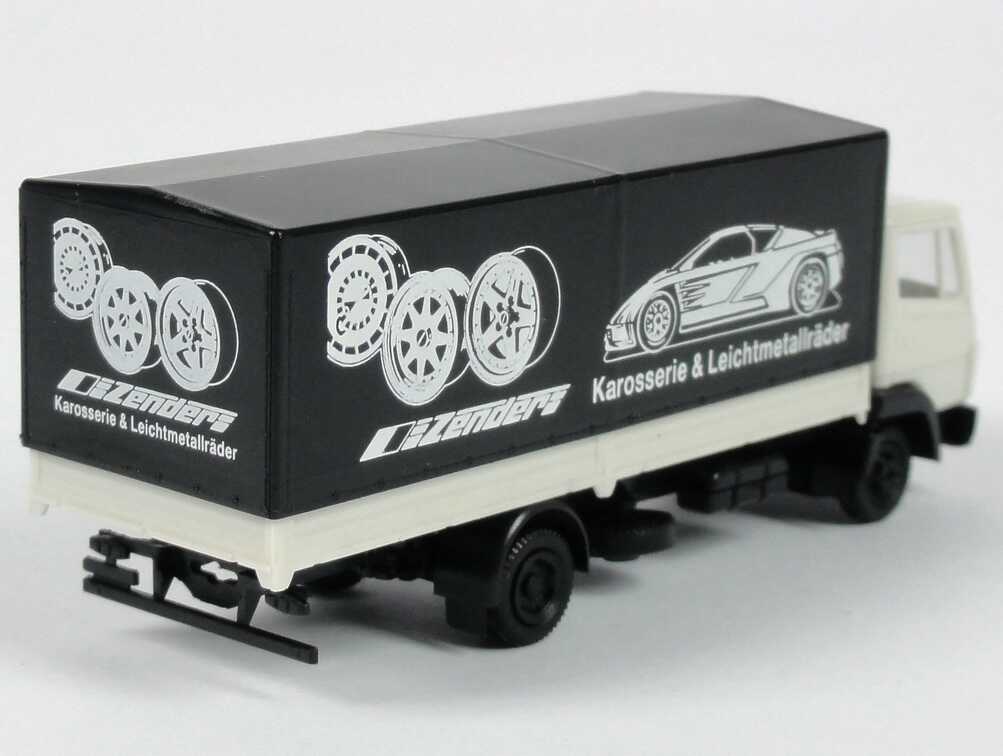 herpa-Modellauto, M 1:87, Mercedes-Benz 814 Pritsche/Plane "Zender - Karosserie & Leichtmetallräder"
