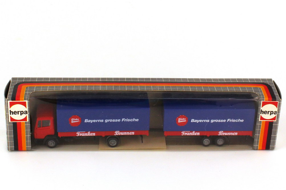 1:87 Mercedes-Benz 814 Pritsche-Plane-Tandem-Hgz Franken Brunnen - herpa 828295