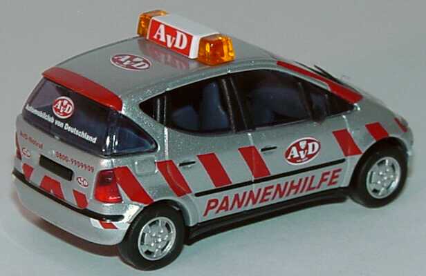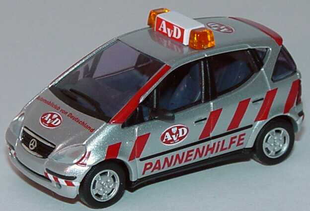 Busch-Modellauto, M 1:87, Mercedes-Benz A-Klasse (W168) "AvD Pannenhilfe" silber/rot