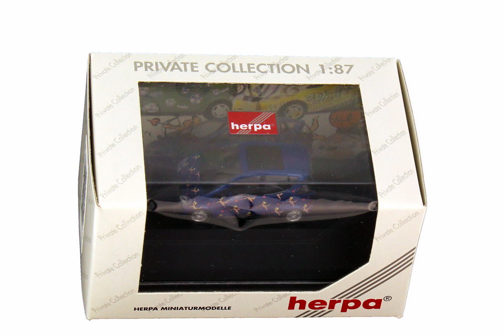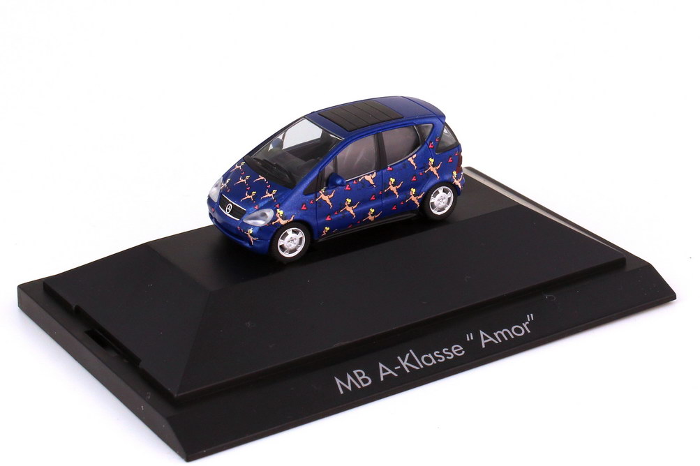 herpa-Modellauto in Minivitrine, M 1:87, Mercedes-Benz A-Klasse (W168) mit Faltdach "A(rt)-Klasse Amor"