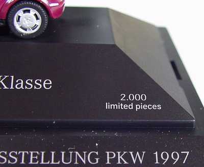 1:87 Mercedes-Benz A-Klasse (W168) mit Faltdach brombeerviolet "IAA 1997" Werbemodell herpa