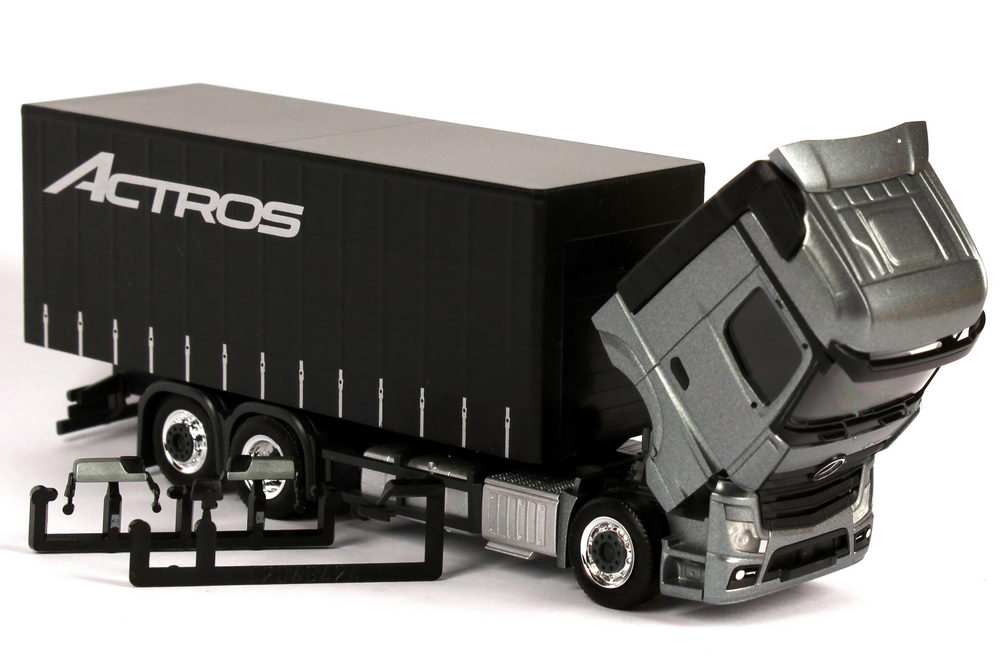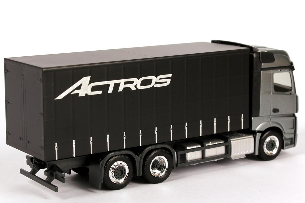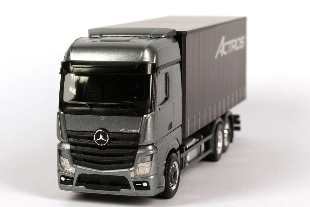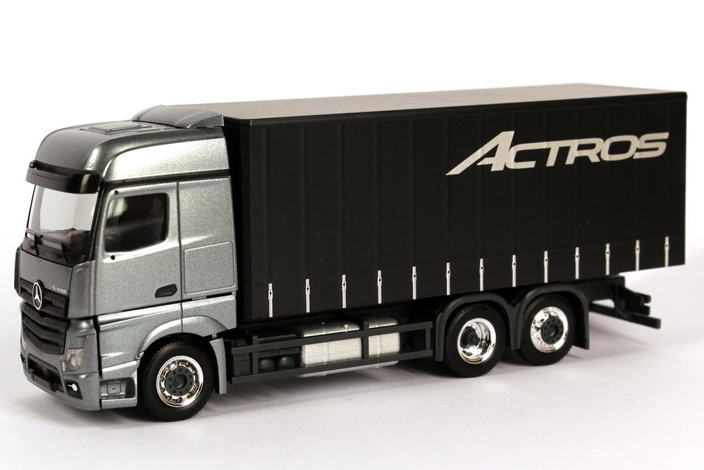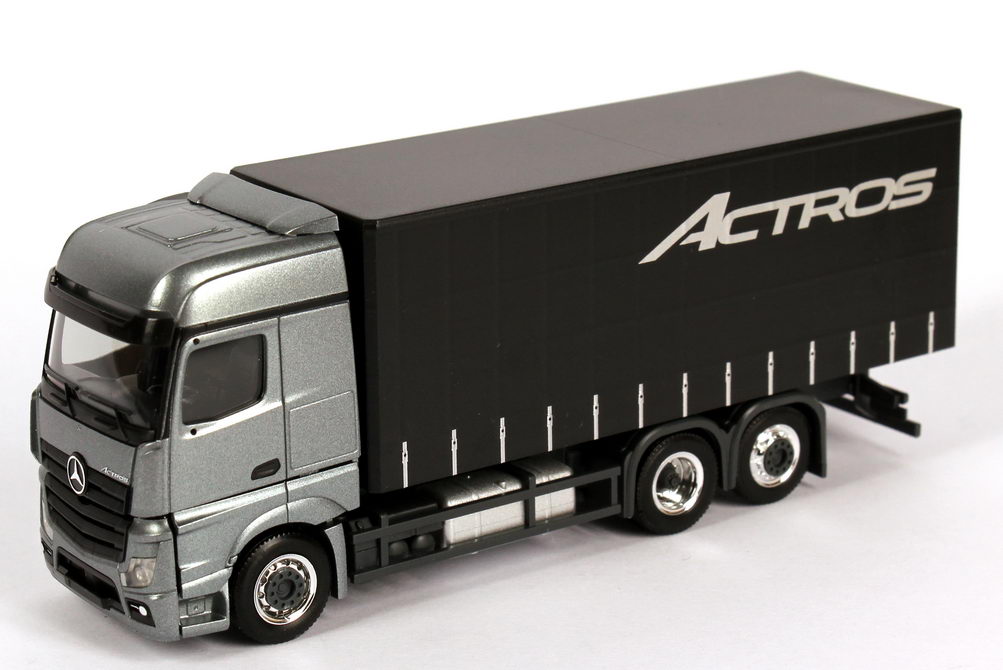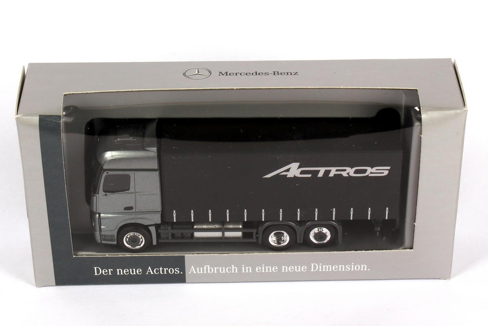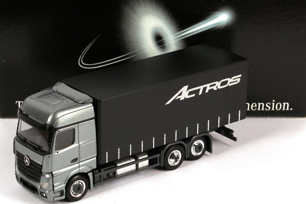 herpa-Modellauto, M 1:87, Mercedes-Benz Actros 2 BigSpace 3a Gardindenplanen-Lkw andorit-grau-met./schwarz (Mercedes-Werbemodell)