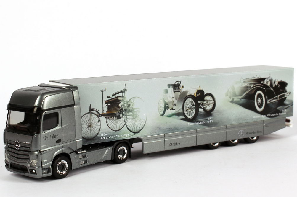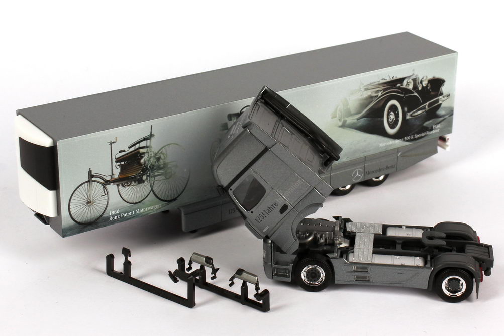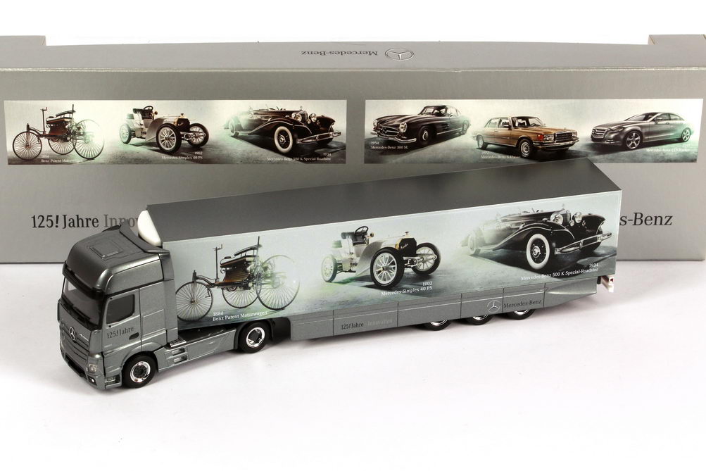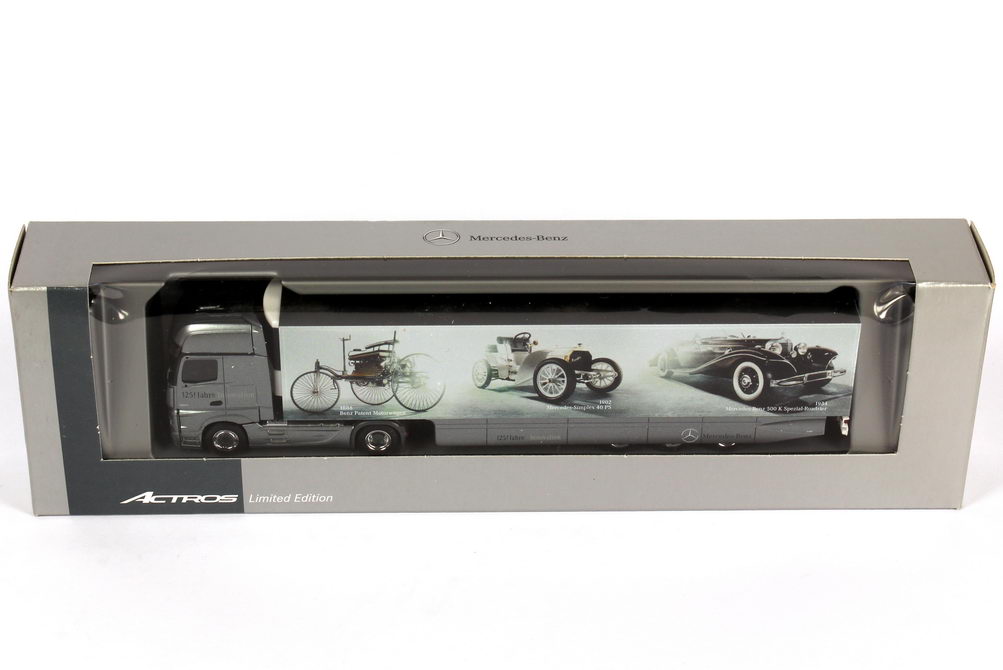 herpa-Modellauto, M 1:87, Mercedes-Benz Actros 2 Megaspace Safeliner-KoSzg 2/3 "125 Jahre Innovation" (Mercedes-Werbemodell)