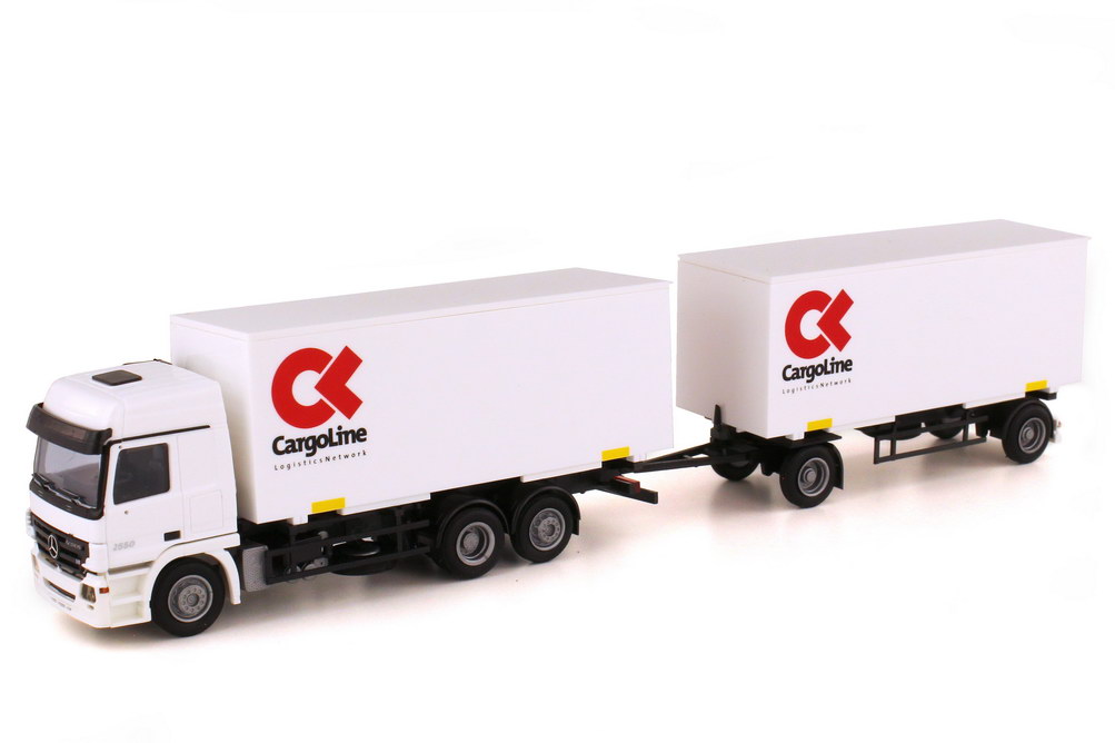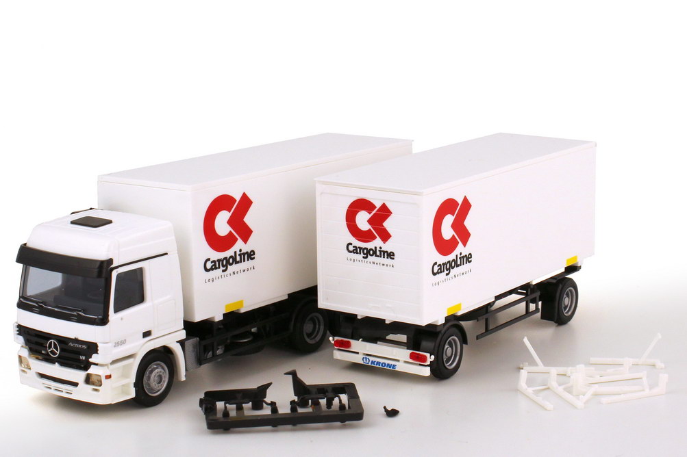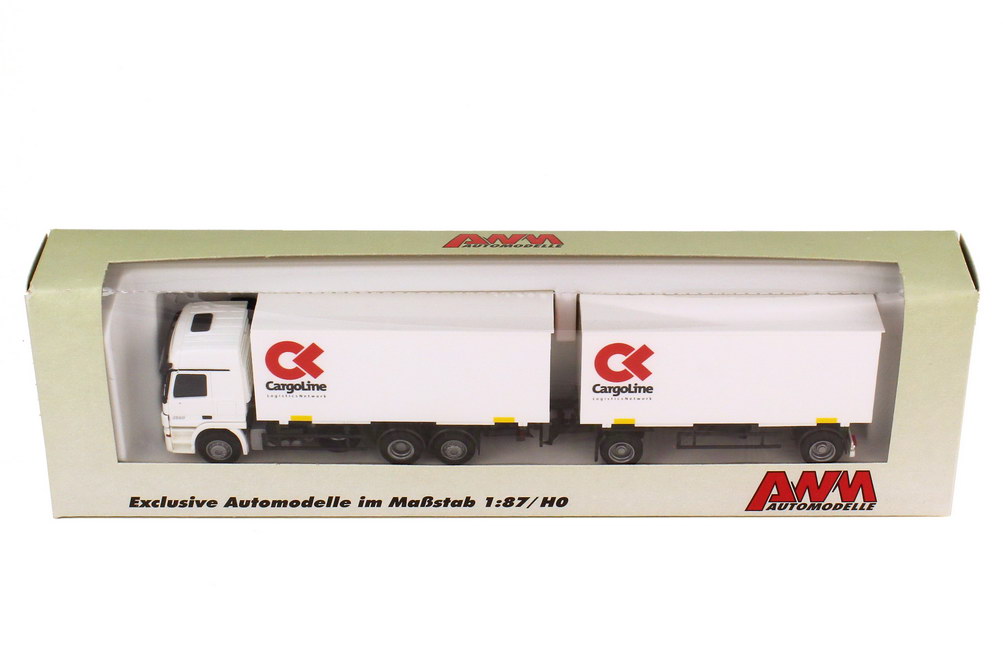 AWM-Automodelle-Modellauto, M 1:87, Mercedes-Benz Actros L MP2 2550 Wechselbrücken-Koffer-Hängerzug 3/2 "CargoLine Logistics Network"