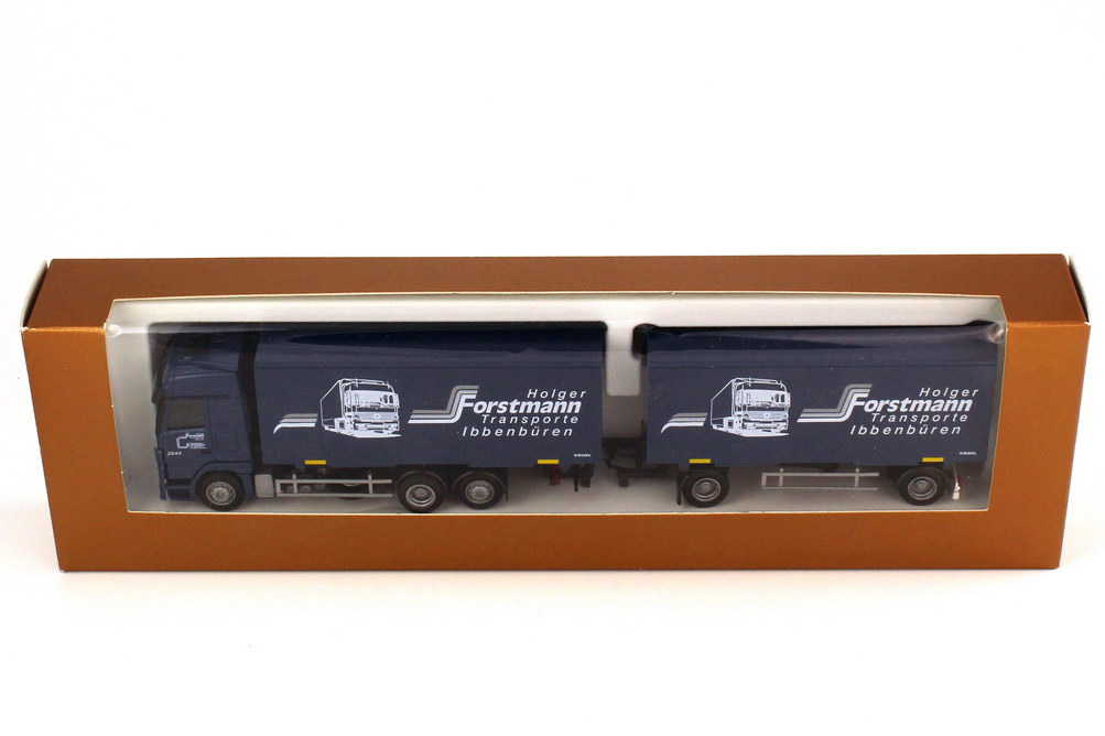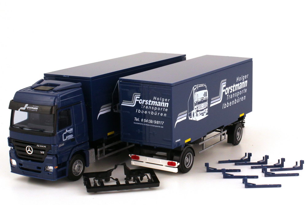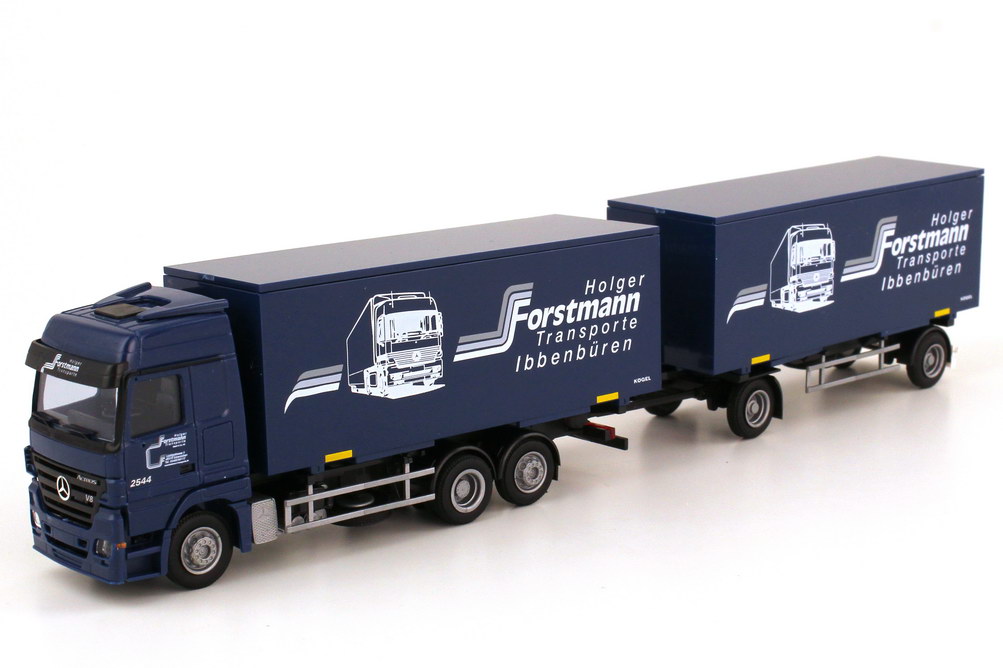 AWM-Automodelle-Modellauto, M 1:87, Mercedes-Benz Actros LH MP2 Wechselbrücken-Koffer-Hängerzug 3/2 "Holger Forstmann Transporte, Ibbenbüren"