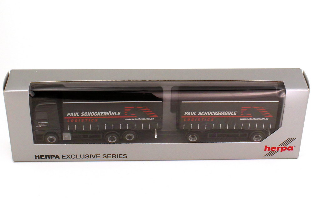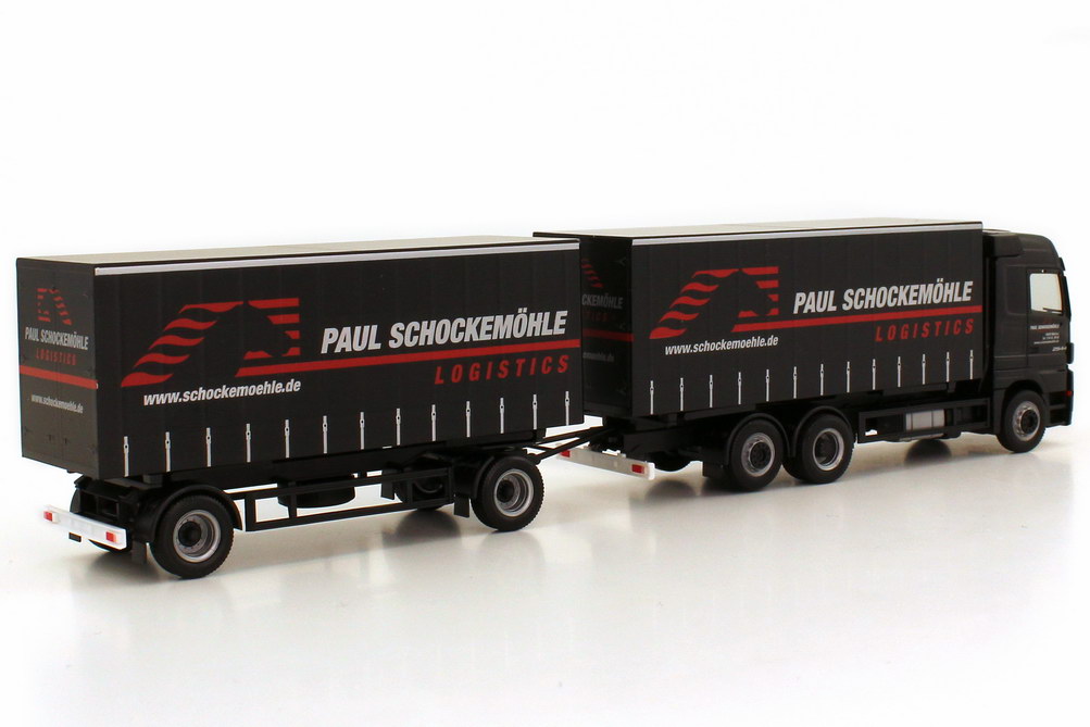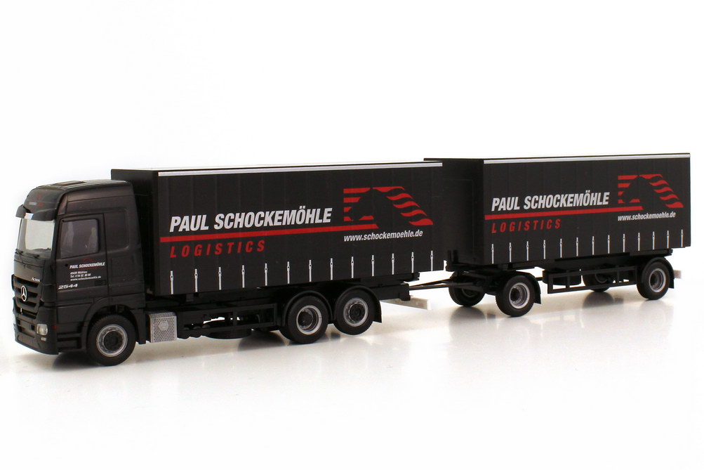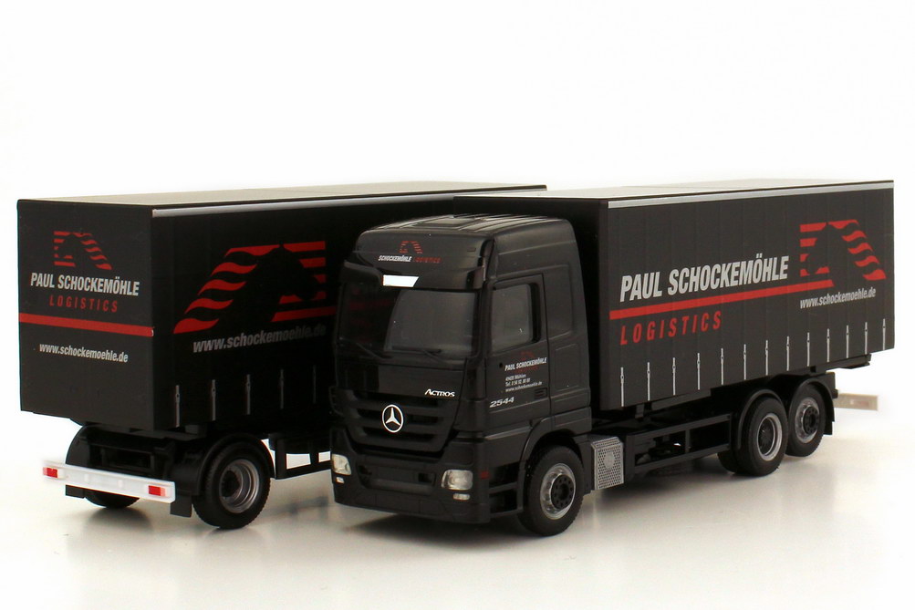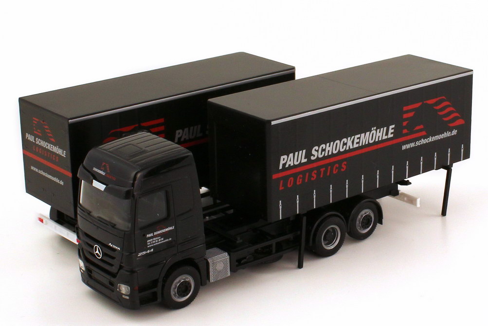 herpa-Modellauto, M 1:87, Mercedes-Benz Actros LH MP3 Wechsel-Gardinenplanen-Hängerzug 3/2 "Paul Schockemöhle Logistics"