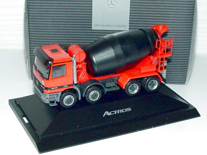 herpa-Modellauto in Minivitrine, M 1:87, Mercedes-Benz Actros S 4a Betonmischer rot/schwarz (Mercedes-Werbemodell)