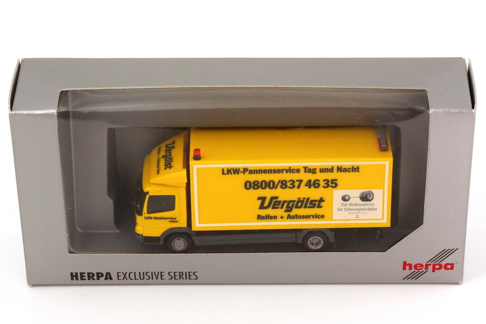 herpa-Modellauto, M 1:87, Mercedes-Benz Atego Facelift 2achs Koffer-Lkw "Vergölst - LKW-Pannenservice"