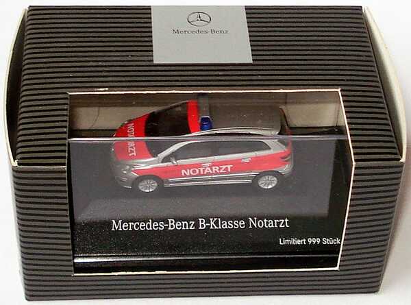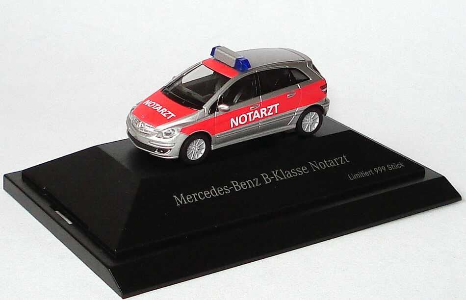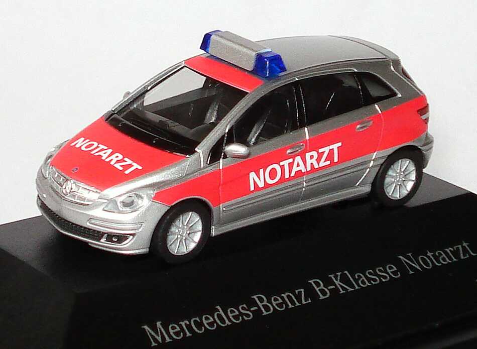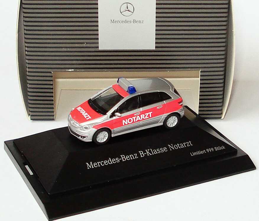 1:87 Mercedes-Benz B-Klasse (W245) Notarzt silber/rot Werbemodell herpa B66961389