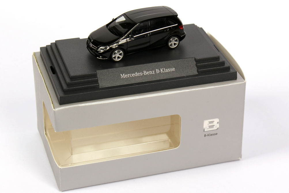 herpa-Modellauto in Minivitrine, M 1:87, Mercedes-Benz B-Klasse (W246) nacht-schwarz (Mercedes-Werbemodell)