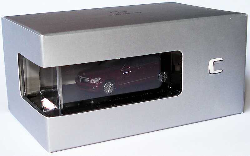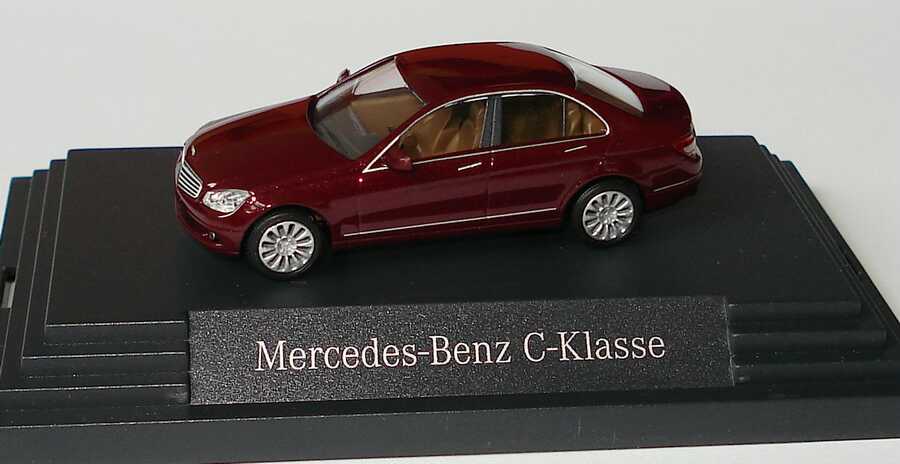 Busch-Modellauto in Minivitrine, M 1:87, Mercedes-Benz C-Klasse Elegance (W204) carneolrotmet. (Mercedes-Werbemodell)