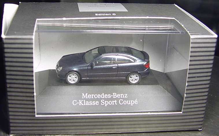 herpa-Modellauto in Minivitrine, M 1:87, Mercedes-Benz C-Klasse Sport Coupé smaragdschwarzmet. (Mercedes-Werbemodell)