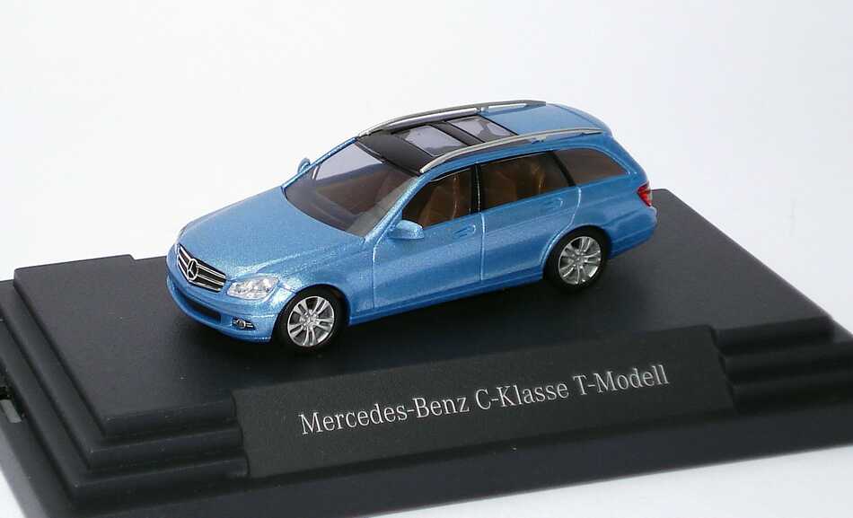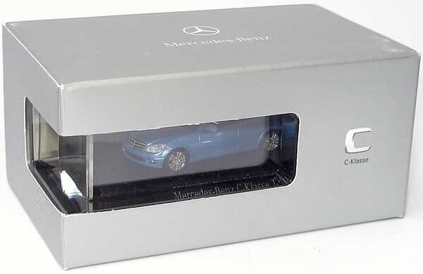 Busch-Modellauto in Minivitrine, M 1:87, Mercedes-Benz C-Klasse T-Modell Avantgarde (S204) indigolithblaumet. (Mercedes-Werbemodell)