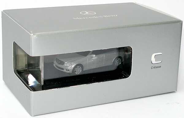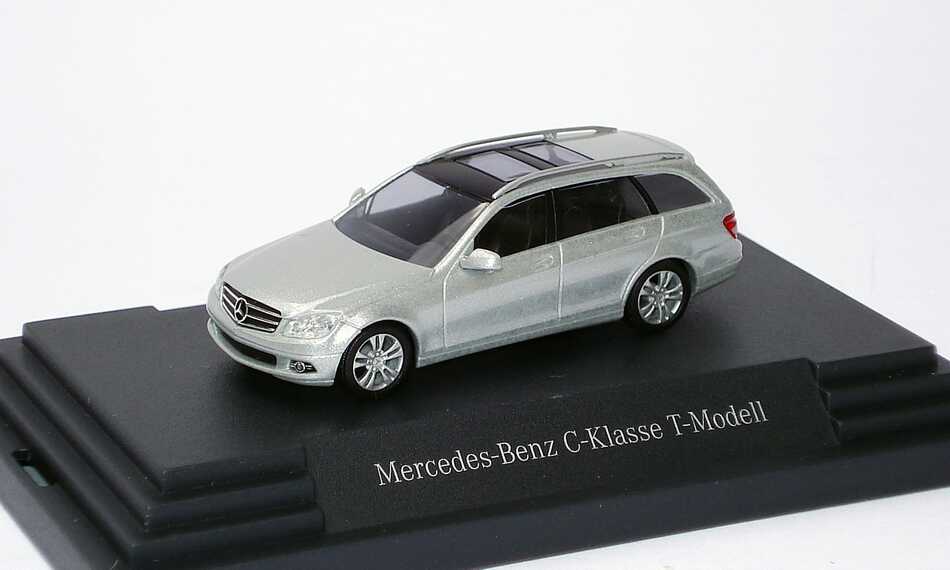 Busch-Modellauto in Minivitrine, M 1:87, Mercedes-Benz C-Klasse T-Modell Avantgarde (S204) iridiumsilbermet. (Mercedes-Werbemodell)