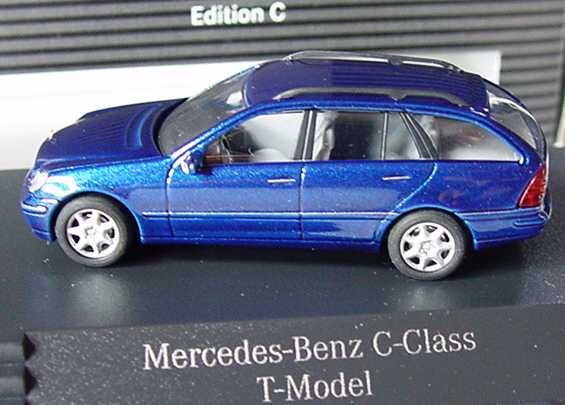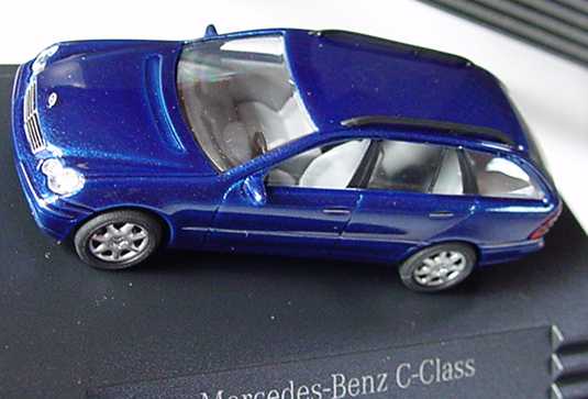 Busch-Modellauto in Minivitrine, M 1:87, Mercedes-Benz C-Klasse T-Modell (S203) jaspisblaumet (Mercedes-Werbemodell)