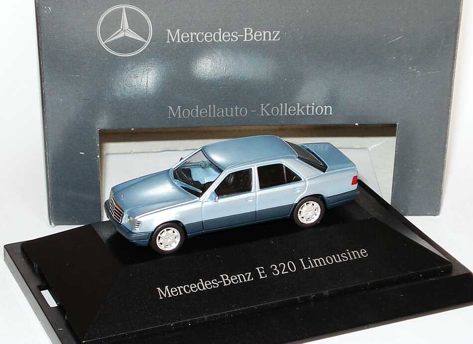 1:87 Mercedes-Benz E-Klasse E 320 (W124 MOPF 2) perlblau-met. Werbemodell herpa B66005612