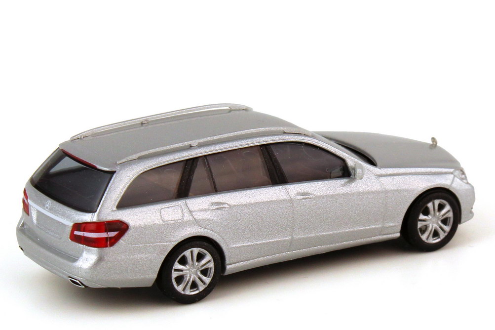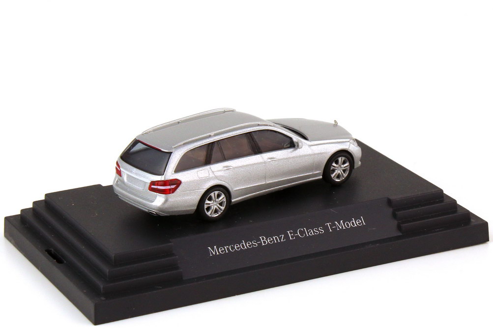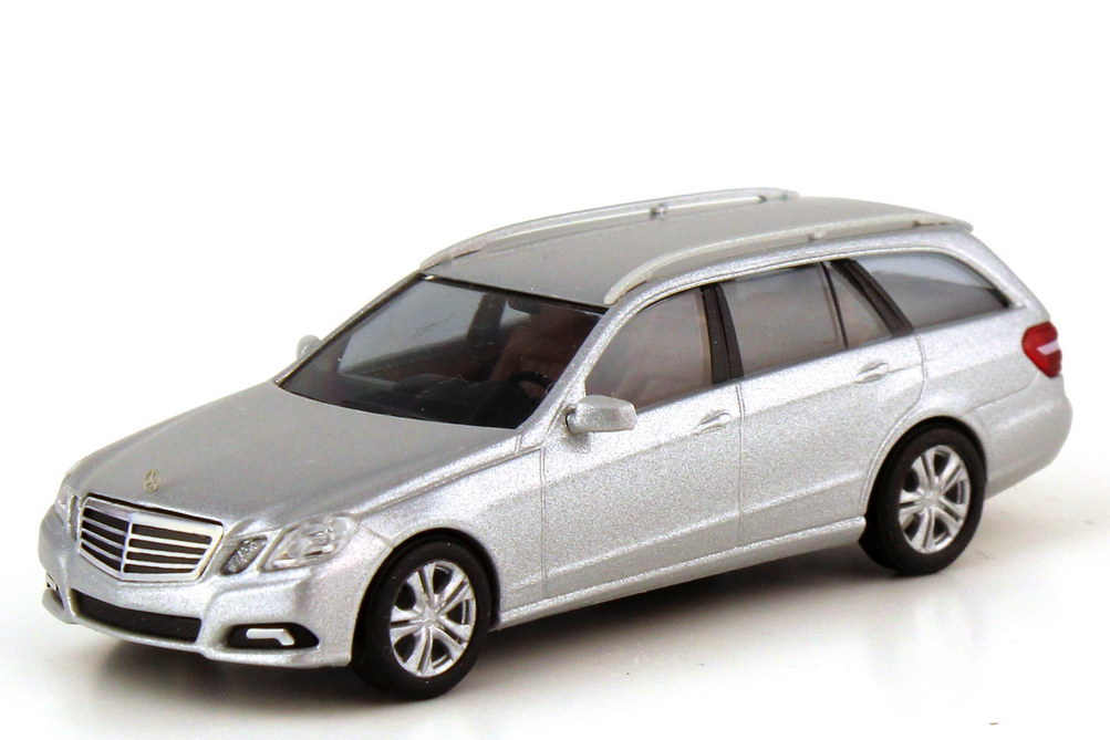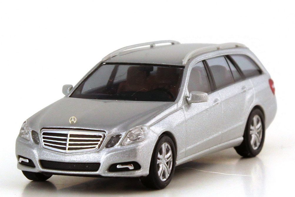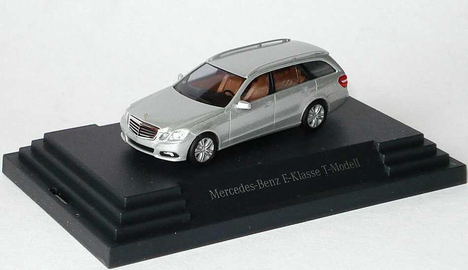 Busch-Modellauto in Minivitrine, M 1:87, Mercedes-Benz E-Klasse T-Modell (S212) Avantgarde iridiumsilber-met. (Mercedes-Werbemodell)