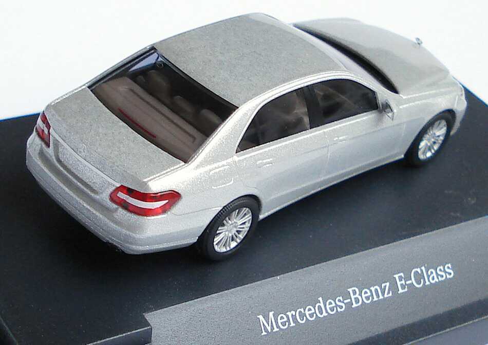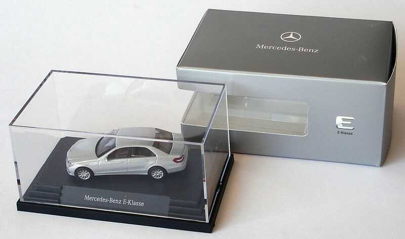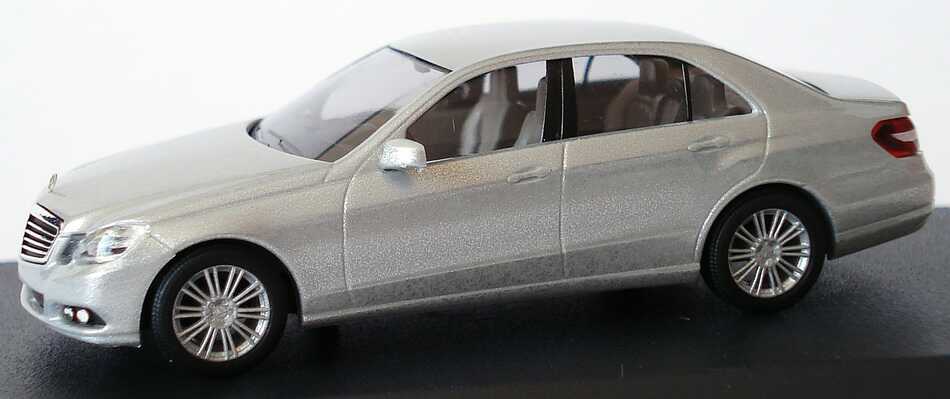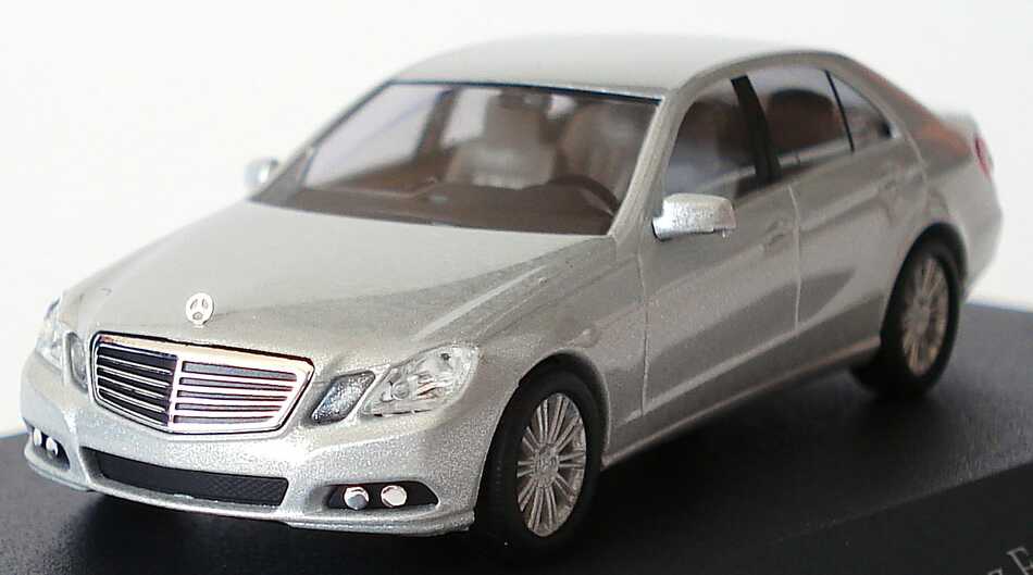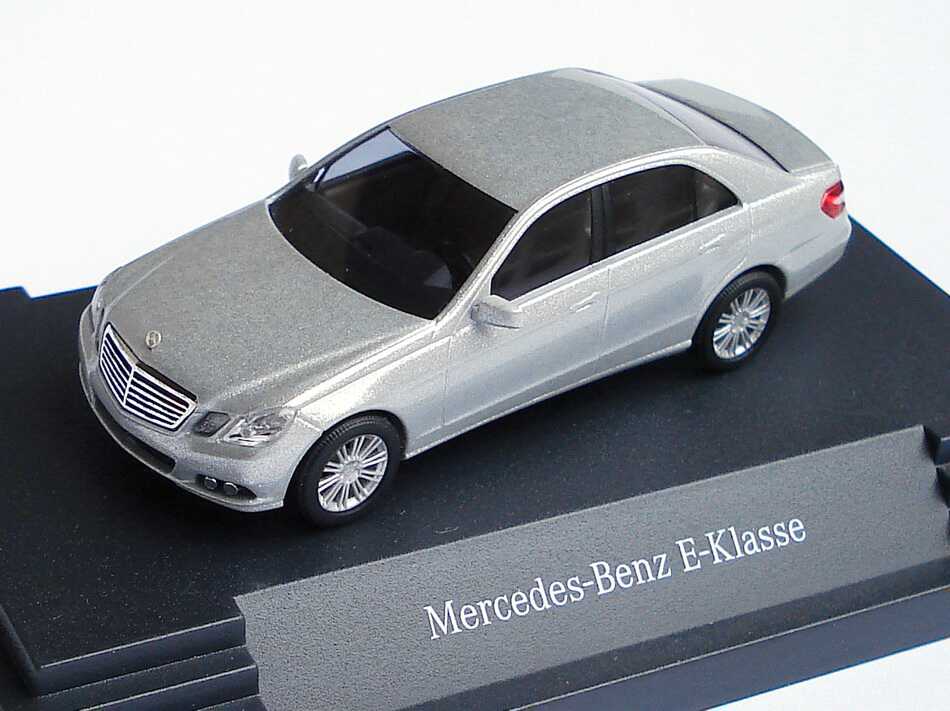 Busch-Modellauto in Minivitrine, M 1:87, Mercedes-Benz E-Klasse (W212) Elegance iridiumsilbermet. (Mercedes-Werbemodell)
