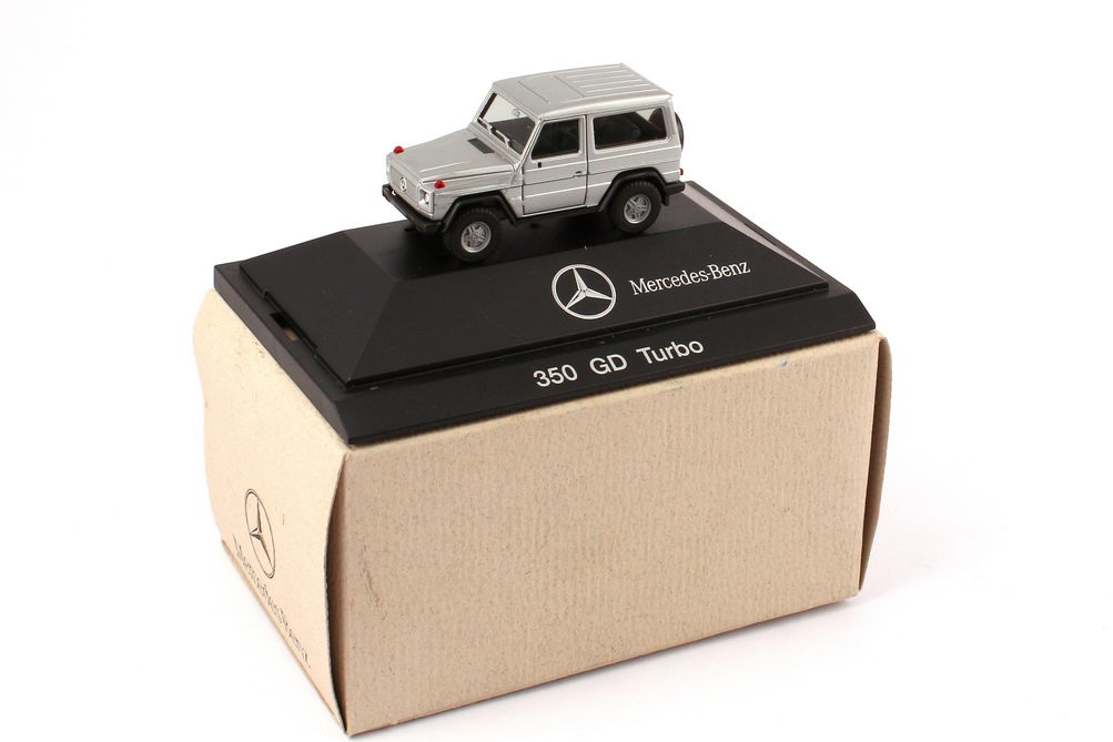 1:87 Mercedes-Benz G-Modell 350GD Turbo (W463) silber-met. (Recyclingpapier-Verpackung) Werbemodell herpa