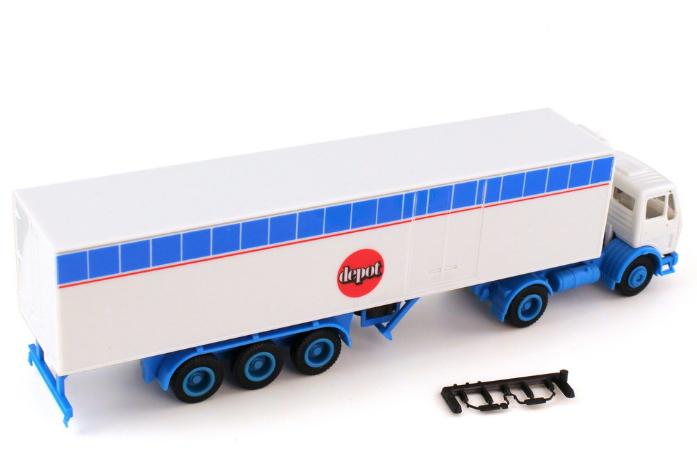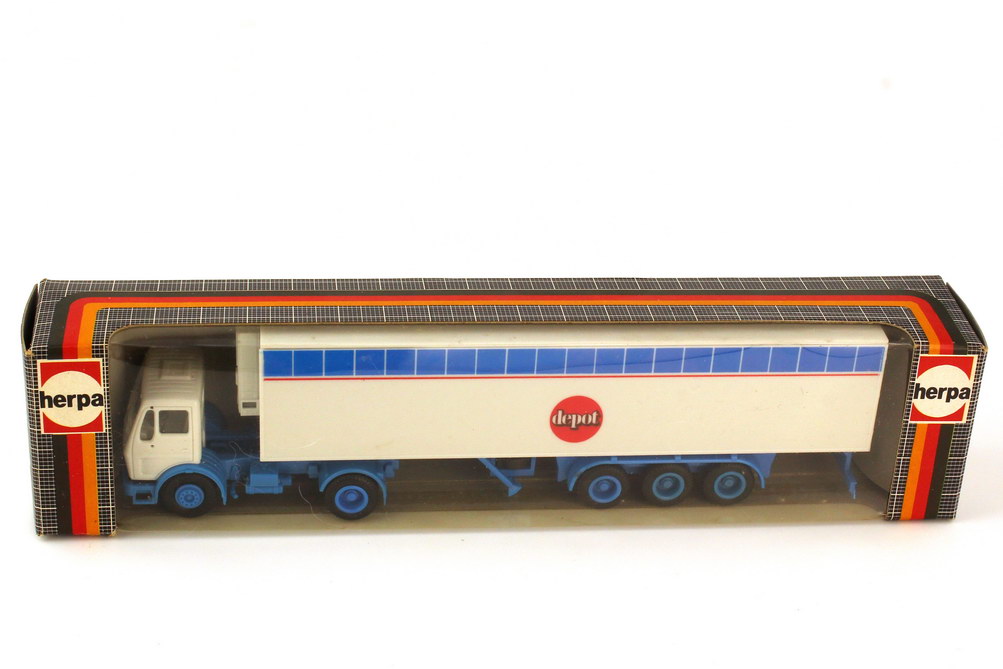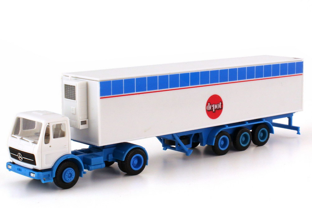 herpa-Modellauto, M 1:87, Mercedes-Benz NG (kurze Kabine) Kühlkoffer-Sattelzug 2/3 "Depot"