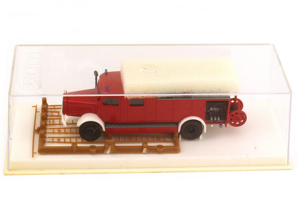 Brekina-Modellauto, M 1:87, Mercedes-Benz L4500S LF25 Löschgruppenfahrzeug Feuerwehr rot/weiß