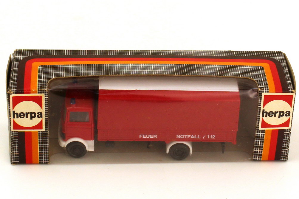 1:87 Mercedes-Benz LP 813 Pritsche Plane Feuerwehr rot weiß - herpa 814302