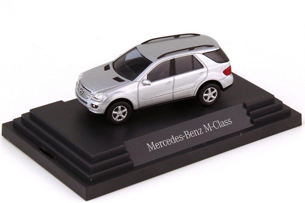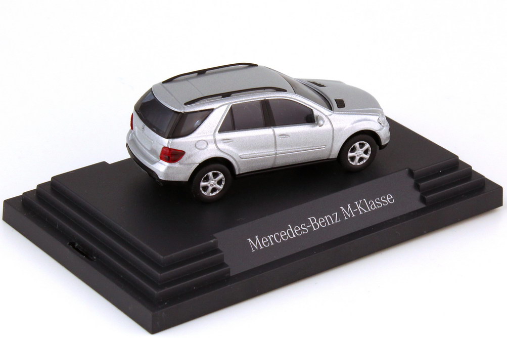 Busch-Modellauto in Minivitrine, M 1:87, Mercedes-Benz M-Klasse (W164) iridiumsilber-met. (Mercedes-Werbemodell)