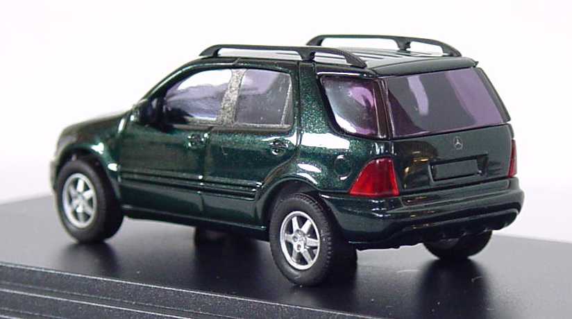 Busch-Modellauto in Minivitrine, M 1:87, Mercedes-Benz ML-Klasse facelift dunkelgrünmet. (Mercedes-Werbemodell)