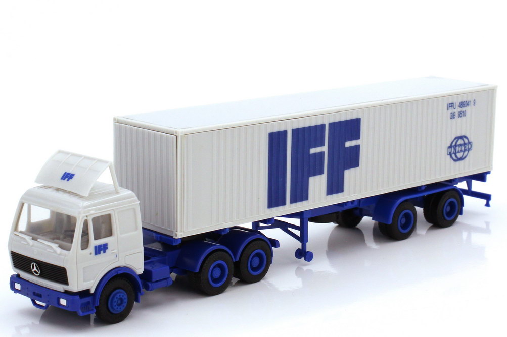 herpa-Modellauto, M 1:87, Mercedes-Benz NG 40ft.-Container-Sattelzug 3/2 "IFF, United International Ferry Freight"