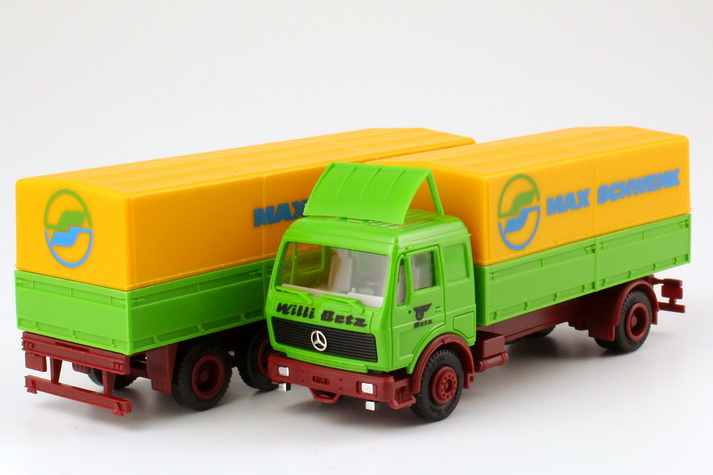 herpa-Modellauto, M 1:87, Mercedes-Benz NG Pritsche/Plane-Hängerzug 2/3 "Willi Betz, Max Schwenk"